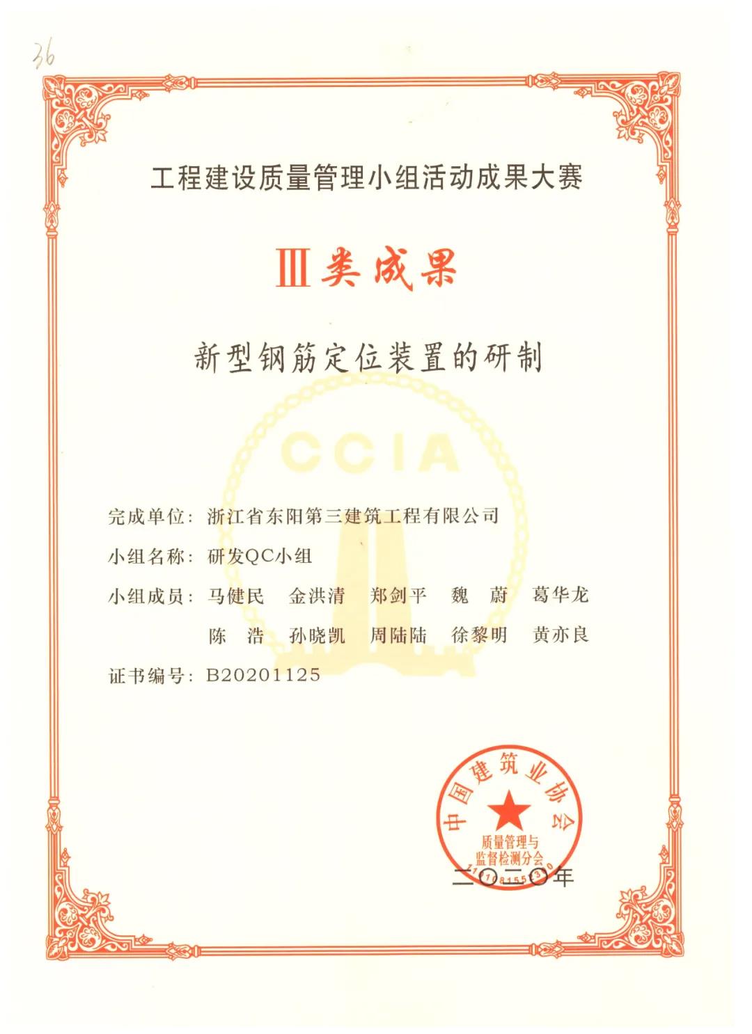 近年来,公司提倡全员参与质量管理工作,逐步把“创造经典、追求完美”的企业标准贯彻到日常施工管理中。从去年开始,技术管理部相关负责人着重加强对QC活动的指导和监督,越来越多的项目管理人员参与到了QC小组活动中,取得的市级、省级QC成果数量也在稳步增多,特别是公司里一些排名前列的QC小组,编制QC成果的能力也得到了新的突破。今年一举斩获3项国家级QC成果奖项,就是能力提升的充分体现。