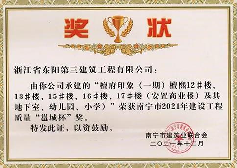 近日,黔桂川公司科技创新、工程创优再获佳绩,报审的“构造柱与梁连接钢筋装配式施工工法”“大直径钢柱面抹灰施工工法”获批广西壮族自治区级(省级)工法;檀府印象(一期)檀熙、恒大苹果园四期唐樾青山(A区)项目,荣获南宁市2021年建设工程质量“邕城杯”奖。