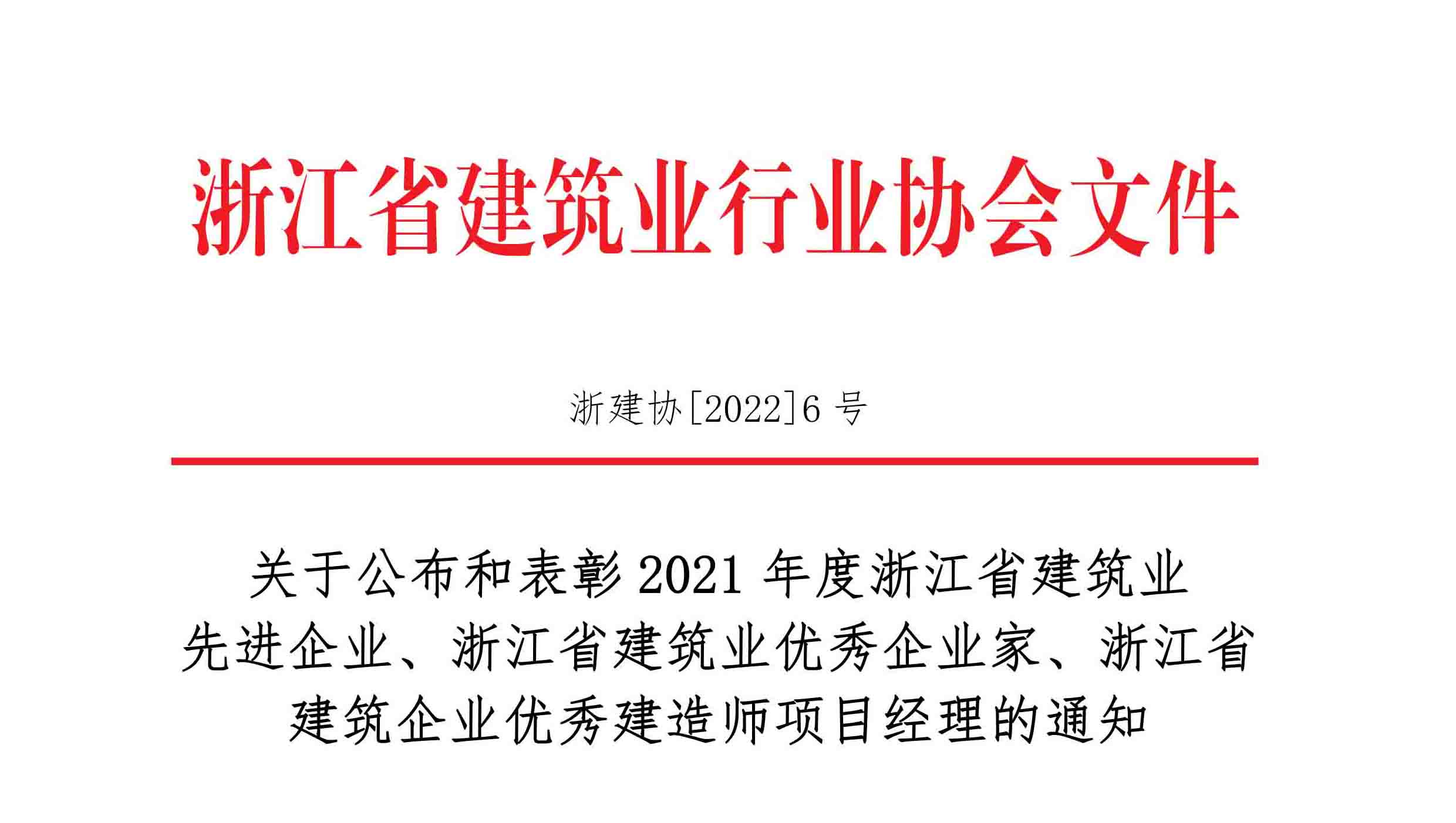 日前,浙江省建筑业行业协会公布了2021 年度浙江省建筑业先进企业、优秀企业家和优秀建造师项目经理的评选结果。公司荣膺2021年度浙江省建筑业先进企业;云海公司华少亮、黔桂川公司郑小军两位同志获评2021年度浙江省建筑业企业优秀建造师项目经理。